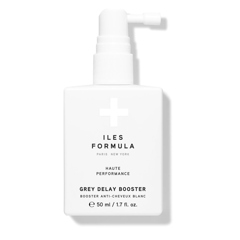 Minimalism meets Maximum Performance with our Gray Delay Booster formulated to restore the natural hair color within one's DNA + prevent premature graying. This Anti-Gray Botanical Leave-In Hair Treatment stimulates restoration of gray hair by increasing melanin production. Iles Formula product features Silverfree, Melanogray and Songyi “Matsutake” Mushroom extract. Silverfree is a potent, drug-free ingredient clinically proven to delay white or gray hair. It re-educates the hair follicle to restore one’s authentic hair pigmentation while offering protection against oxidative damage caused by cell activity and exposome. The Melanogray is a clinically tested anti-gray hair essence sustainably sourced from upcycled peel paste from the organic Chios mandarin. The blend delivers molecules that provoke stimulation to the melanin cell activity. Songyi ‘Matsutake’ Mushroom Extract delays the onset of gray hair by neutralising free radicals and reducing oxidative damage to the hair follicles creating the optimal environment for healthy hair growth and melanin production. Effective on loss of hair color related to age + genetic + hormonal + psycho-emotional + dietary + environmental factors. Just spray evenly to the scalp, focusing on areas of gray or white hair and massage into the scalp to ensure even distribution. Do not rinse. Continue treatment daily for a minimum of 3 months. Once the desired result is achieved, use 2-3 times a week to maintain. For optimal results, use with the Iles Formula Shampoo + Conditioner. No Pigments, Drug Free, No Residue, Vegan and Gentle on Scalp.