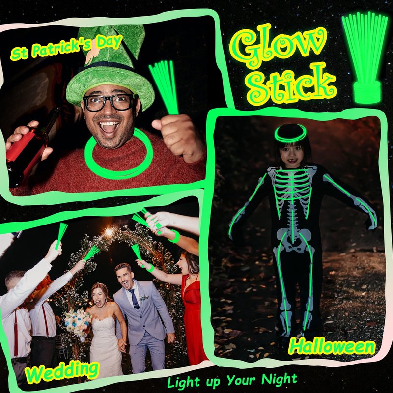 - Safe For Kids And Adult - Made from the highest quality materials, these 8 in glow sticks bulk are durable, not easy to break and leak as similar products. Anti-Leaking, non-toxic, environmentally friendly and waterproof, you can even use it underwater. The enough quantity and quality will enable you to confidently share these colorful glow bracelets and necklaces with family and friends. (Tips: Glow sticks that have not been activated can be saved for your next event)