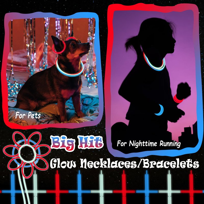 - Eye-catching & Longer Lasting - The Christmas glow sticks are brightest for 6-8 hours and then slowly fade away. They are bright enough to be easily seen shortly after activation. With these glow bracelets and necklaces, kids, adults and pets will be even more visible and safe and easier to spot while walking around at night. Tip: Shine a strong light on these glow sticks for a while after activation and the colors will be more vibrant and last longer