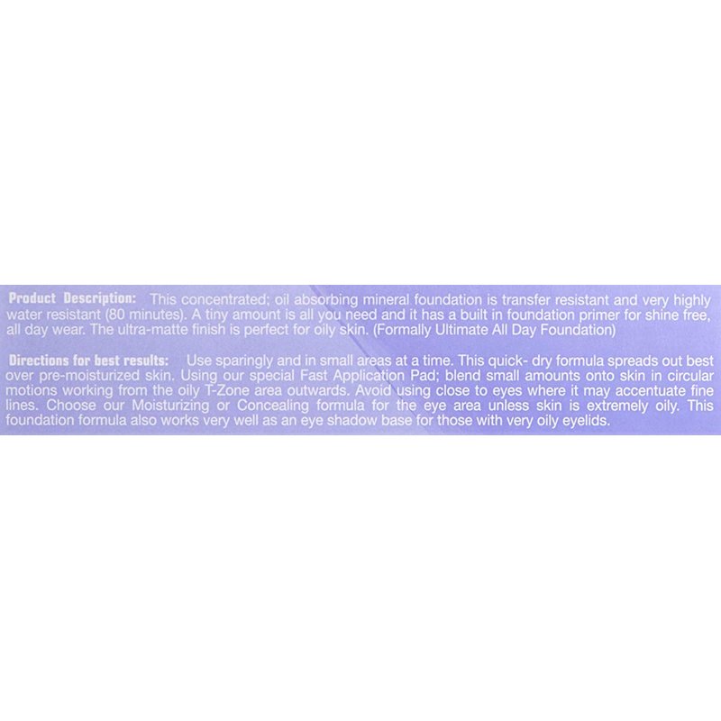 - The ultra-matte finish is perfect for oily skin. (Formally Ultimate All Day Foundation.)