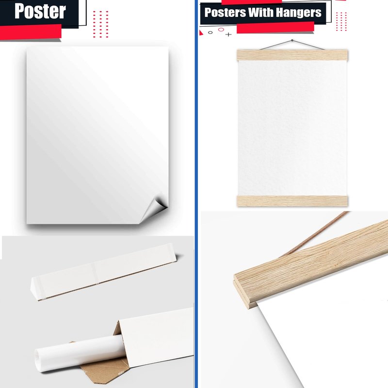 - Classic Matte Paper Poster with Hanger Color Natural Wood: Our minimalist wooden hangers are made with, two that clamp to the top of your print and two that clamp to the bottom to give a vintage look and feel. The poster is made on our lighter-weight, uncoated classic matte paper. The perfect option to stand the test of time. While the poster and hangers are packed separately in one box. The hangers are made from pine and come in one color variants natural wood.