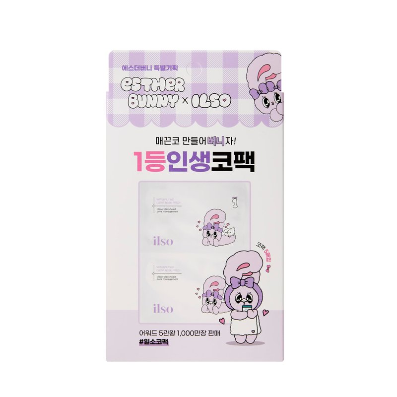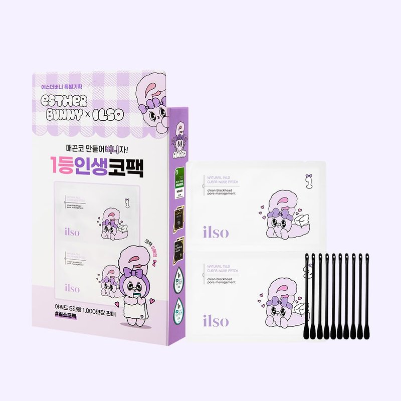 ilso Natural Mild Clear Nose Patch, Melt blackheads & Tighten Pores, no irritation, Sensitive skin friendly, Korean skincare, cotton swabs included, 5 sheets (Esther Bunny Limited Edition)