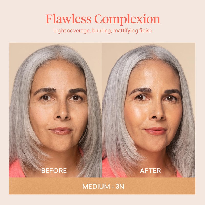 - Easy Shade Matching + On-The-Go Refillable Compact: Our smart formula features tone-adapting technology that makes it easy to shade match across fair, light, medium, tan, and deep skin tones. Endlessly refillable to reduce waste, the compact is a gorgeous statement piece designed by Sofia Vergara. Includes built-in mirror and breathable compartment for (included) application sponge.