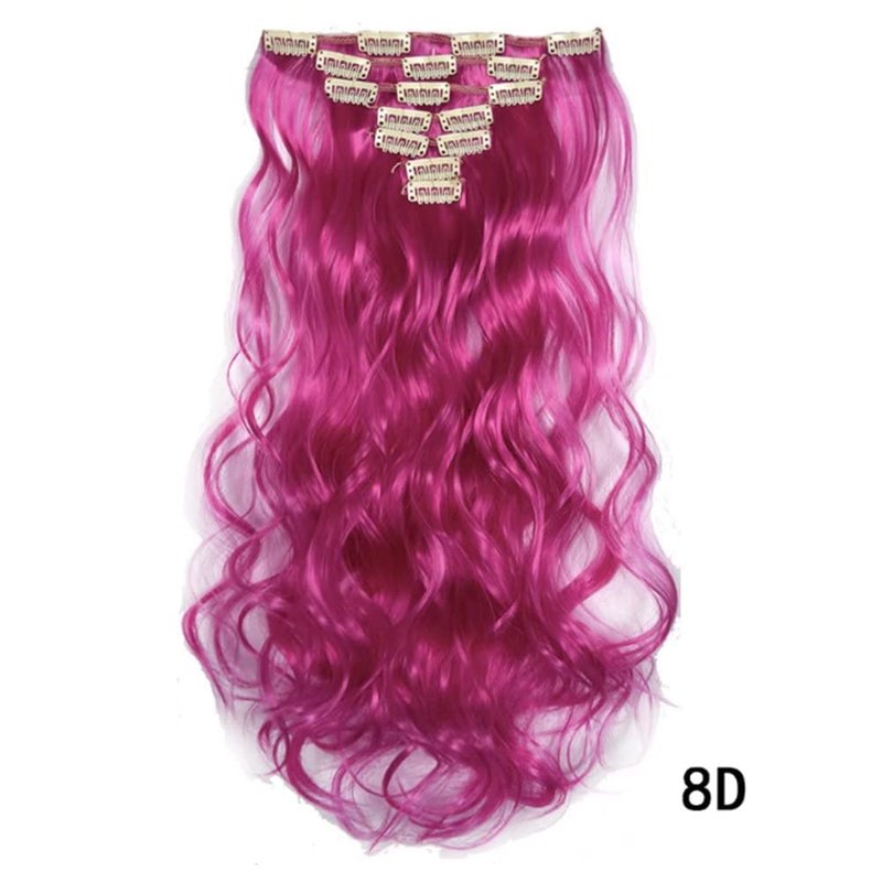 iLUU 20" 100g Wavy Curly Synthetic Hairpiece #8D Shocking Pink Color Hair Extension Clip in 7Pcs Full Head 16 Clips ins on Hair Extensions for Women Party Gift Cosplay