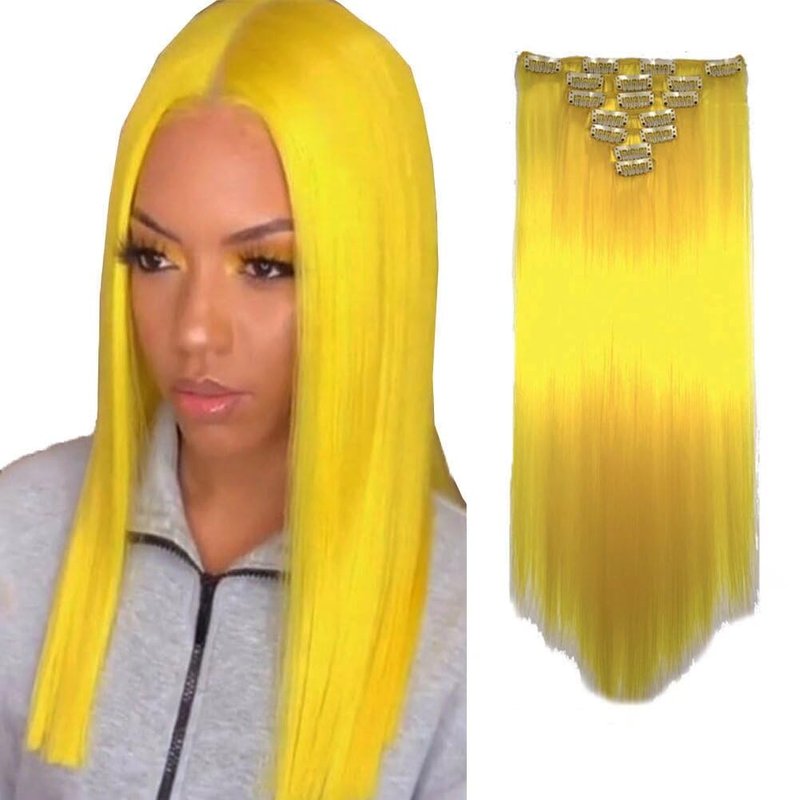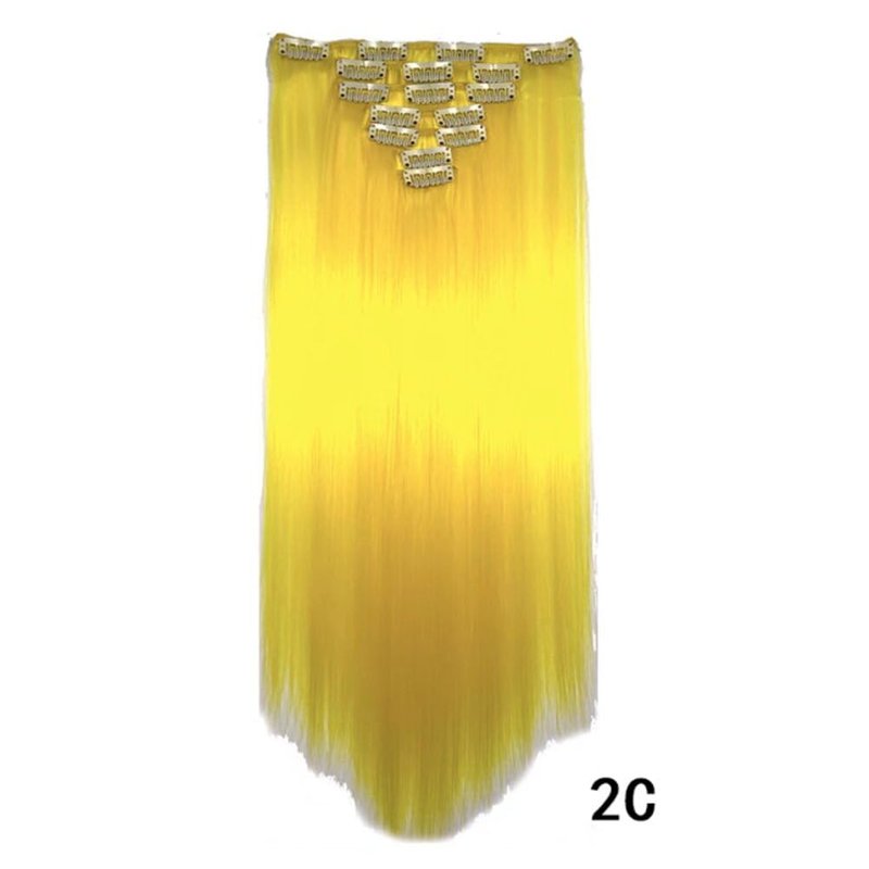 iLUU 22" 7pcs Full Head Straight Long Hairpiece Clips in on Synthetic Hair Extensions #2C Yellow 16 clips Hair Pieces 100g Thick Clip in on Hair Extension for Women Girl