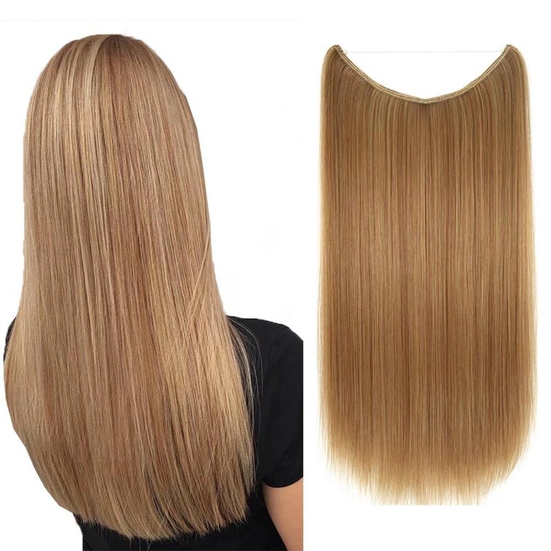 iLUU 22 Inch Synthetic Fiber Hair Extensions Invisible Transparent String Hair Extension Color #27A/613 Honey Blonde/Bleach Blonde 80g Per Package Strong Fishing Line Hair Extensions for Women