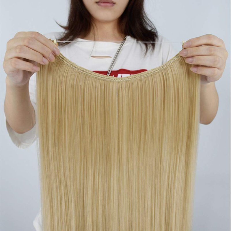 iLUU 22inch/80g Synthetic Hair Extensions Hidden String Straight Hairpiece Secret Wire Invisible Fish Line Women Long Smooth Natural Hair Hairpiece Hairpieces #30J-Honey Blonde
