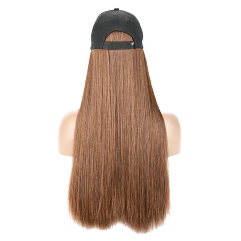 iLUU 24" Synthetic Hair Extension Attached Baseball Cap Long Straight Wig Hat with HairHair Extensions Black Hat with Light Brown Hairpiece Cap Wig for Women - Light Brown