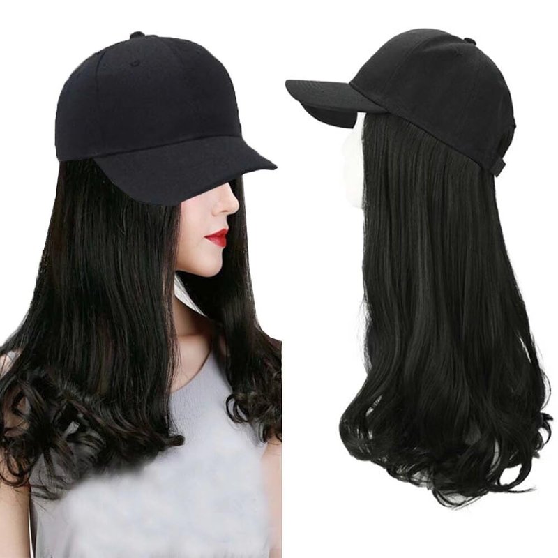 iLUU Black Wig Hair and Black Hat Baseball Cap with Hair Extensions Synthetic Wavy Wig Hat Adjustable Baseball Hat and 14" Heat Resistent Hairpieces for Women Girl Daily Use (Black)