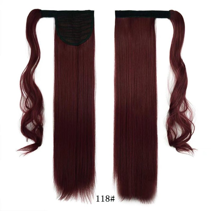 iLUU Long Straight Wrap Around Ponytail Extension 100g One Piece Clip in Synthetic Hair Extensions 24" Darken Red Synthetic Hairpieces Ponytail for Women (118# - Dark Red)