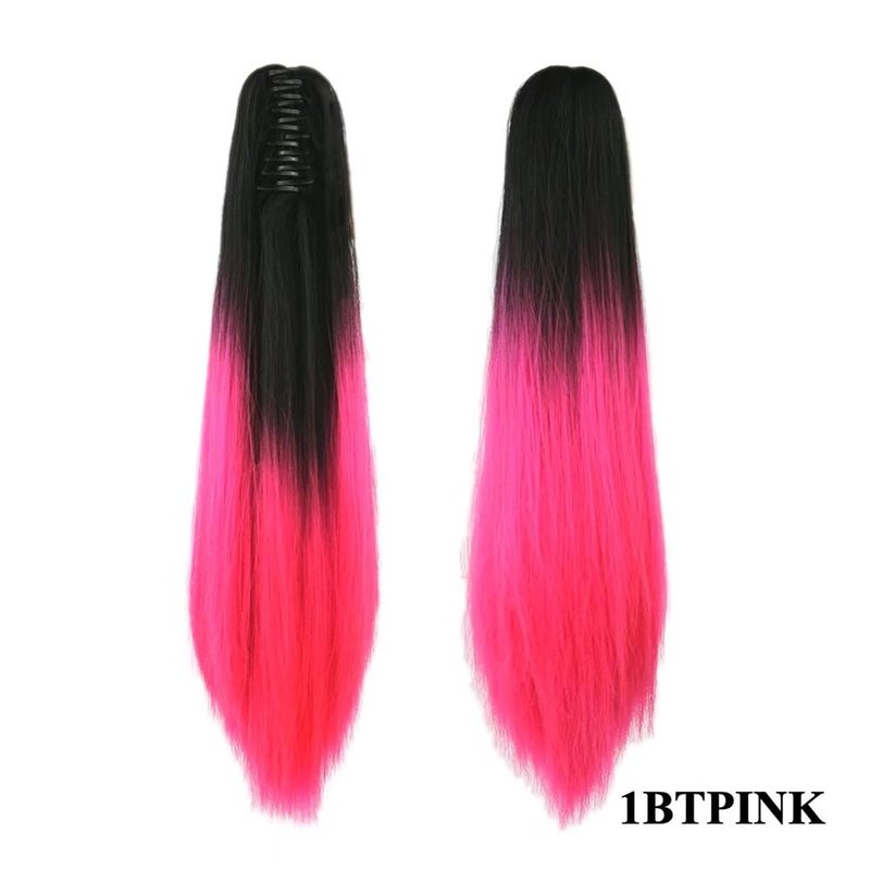 iLUU Ombre Synthetic Hair Ponytail Extensions Natural Black to Pink Color Two Tone Claw in Ponytail Hair Extensions Long Straight Hairpiece 24" 130G/Set Pony Tail 1BTPink