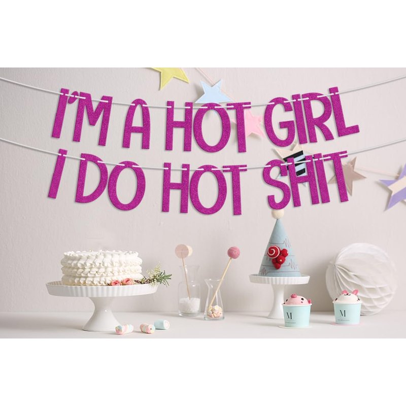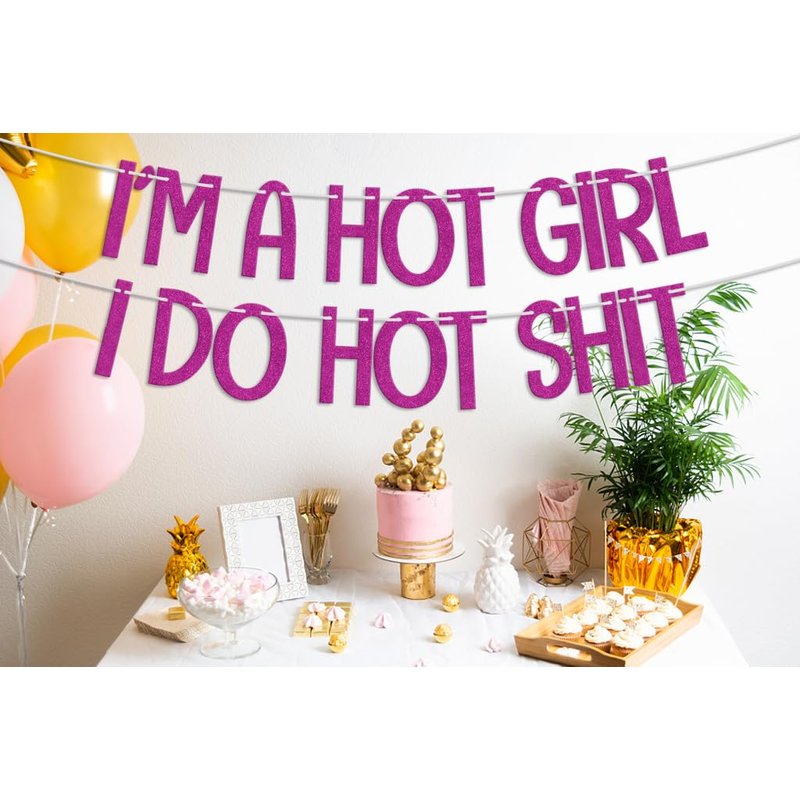 I'm A Hot Girl I Do Hot Shit Banner, Bachelorette Party Banner, Hot Girl 18th 21st 30th Birthday Party Decoration, Hot Girl Bday Party Supplies Rose Red