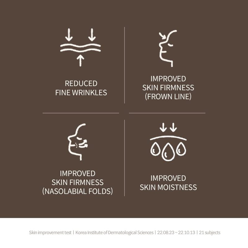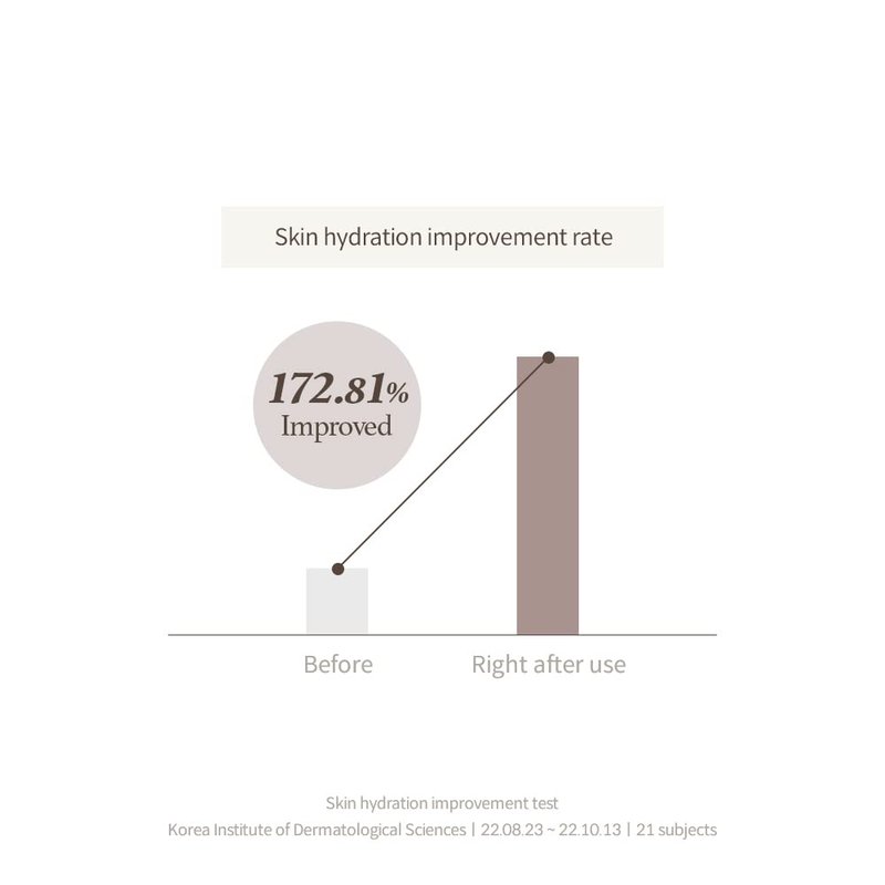 Reduced fine wrinkles 9.33% Improved skin firmness(frown line 22.54%, nasolabial folds 25.80%) Delivered deep moisturizing 172.81% *You can find the clinical test on the product detail page
