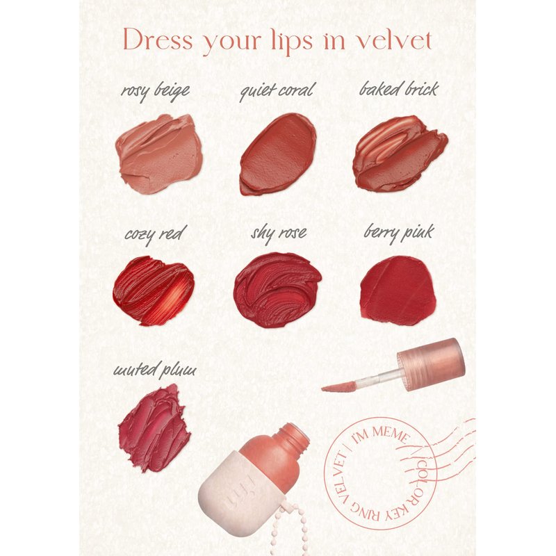 I'M MEME Lip Stain - Color Key Ring Velvet Tint - Gift, Highly-pigmented, Long Lasting, Travel-Friendly, Velvet Finish, 07 Muted Plum, 2.8 g