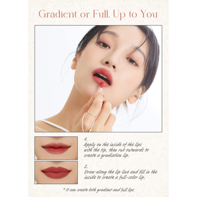 - š HOW TO USE: Apply on the inside of the lips with the tip, then rub outwards to create a gradation lip. Draw along the lip line and fill in the inside to create a full-colored lip.