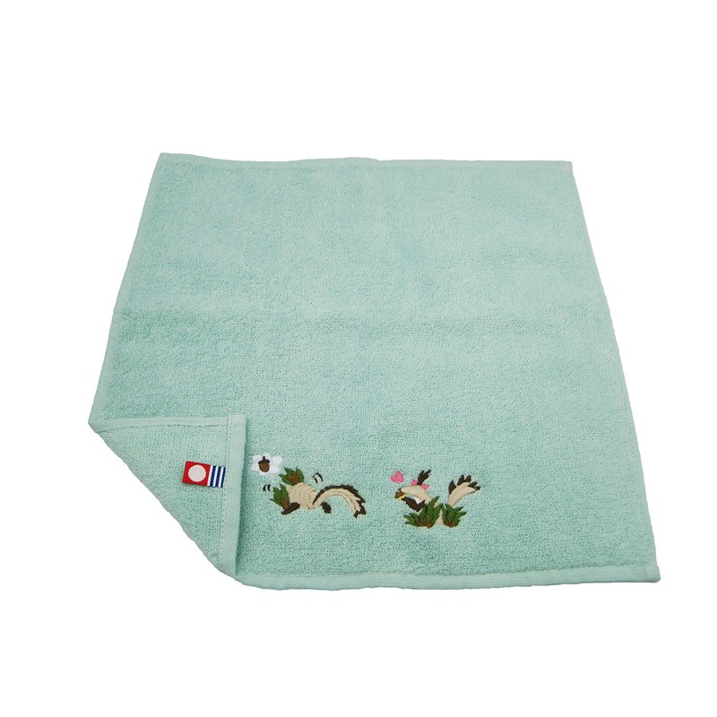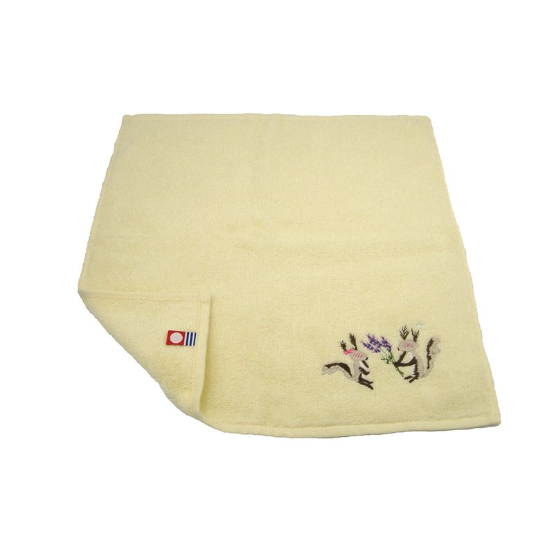 The towels used are Imabari towels made in Japan that are highly absorbent, fluffy and soft to the touch. Imabari towels are the most famous towels in Japan. An original towel cloth handkerchief with cute ezo-risu (Hokkaido squirrel) that lives in Hokkaido, Japan, embroidered on it. The motif is the story of two shy ezo-risu and their love unfold. It comes in a gift box.