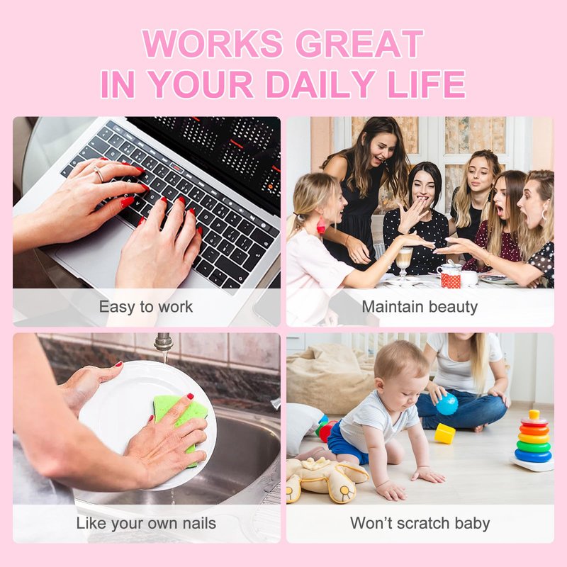 - Easy Wear: DIY nail salon at home, saving lots time and money at nail salon, can change you nails style in 10 minutes anytime, anywhere. Simple steps allow you to get the same impressive professional effect at home. Be a charms girl with fake nails