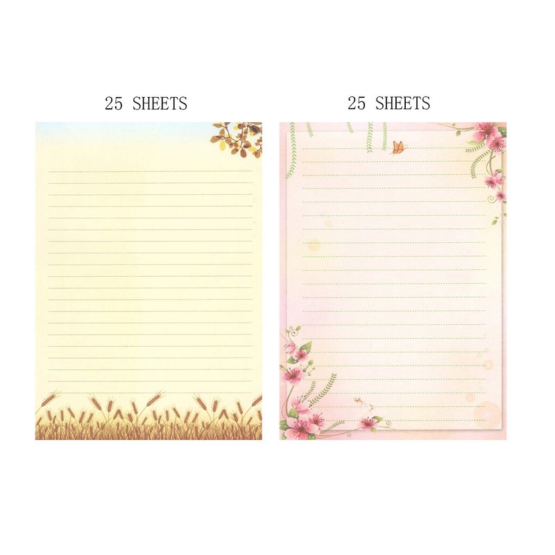 * Quantity: 50 pcs Writing Paper(2 Different Styles will be sent, each style contains 25 writing paper)