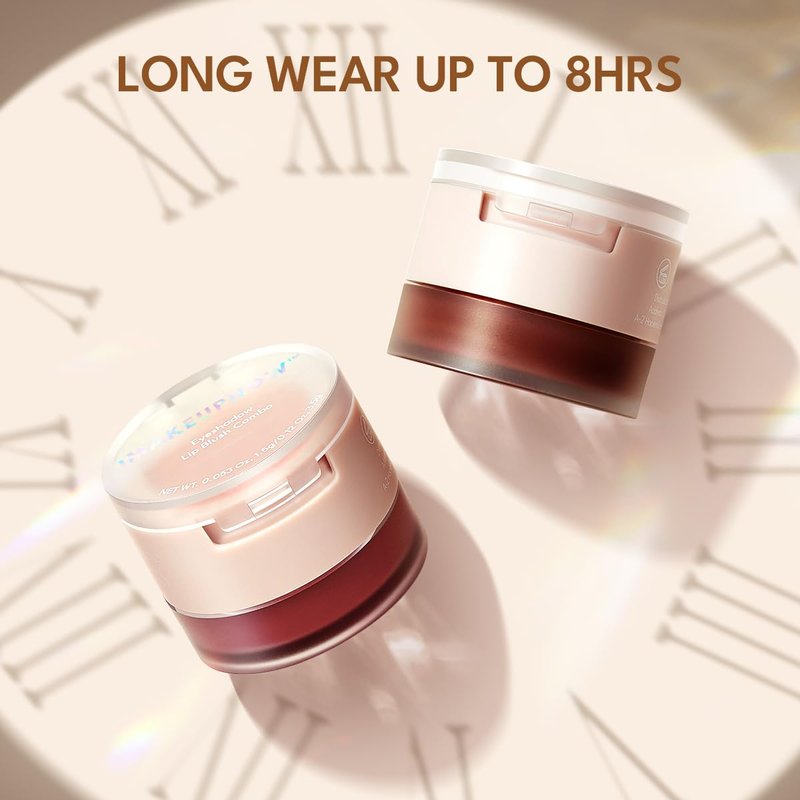 Blush for cheeks, eyes, lips, 2 color set. The first layer of the lip and cheek cream is a light-colored shimmer, suitable for layering as eyeshadow or used as a highlighter; the second layer is a creamy, matte texture that is smooth and lightweight, ideal for use as blush, eyeshadow, or lipstick. Its small size is convenient for carrying and touch-ups on the go.