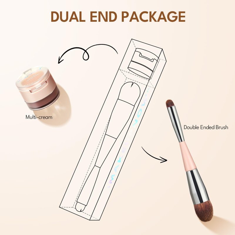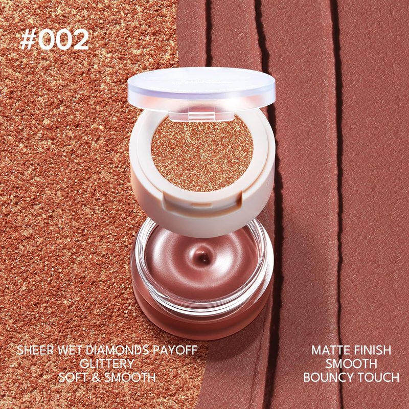 - Multi-use Cream Blush Stack: This innovative blush stack features a two-layered structure with cream blush for cheeks,lips,eyes on bottom, the top layer offers eyeshadow with dazzling sparkly wet diamond payoff. It comes paired with a dual-ended brush for seamless application