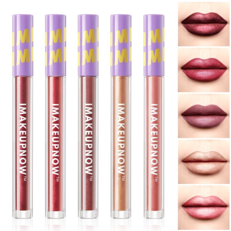imakeupnow Metallic Lipstick for Women 5Pcs Set, Long-Lasting Lip Color, High-Pigment Shimmer Finish