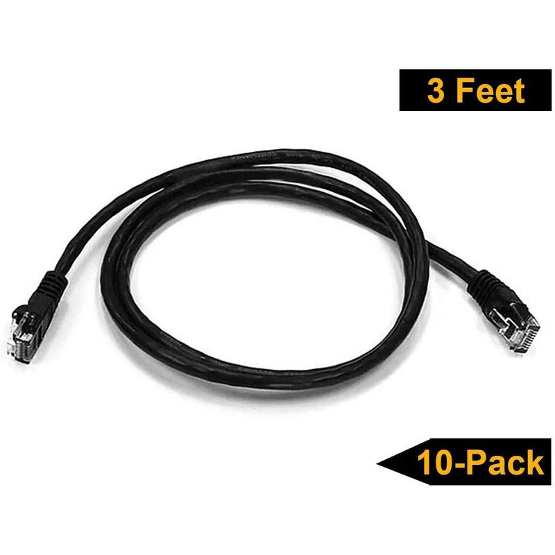 iMBAPrice 3' Cat5e Network Ethernet Patch Cable, 10 Pack, Black (IMBA-CAT5-03BK-10PK)