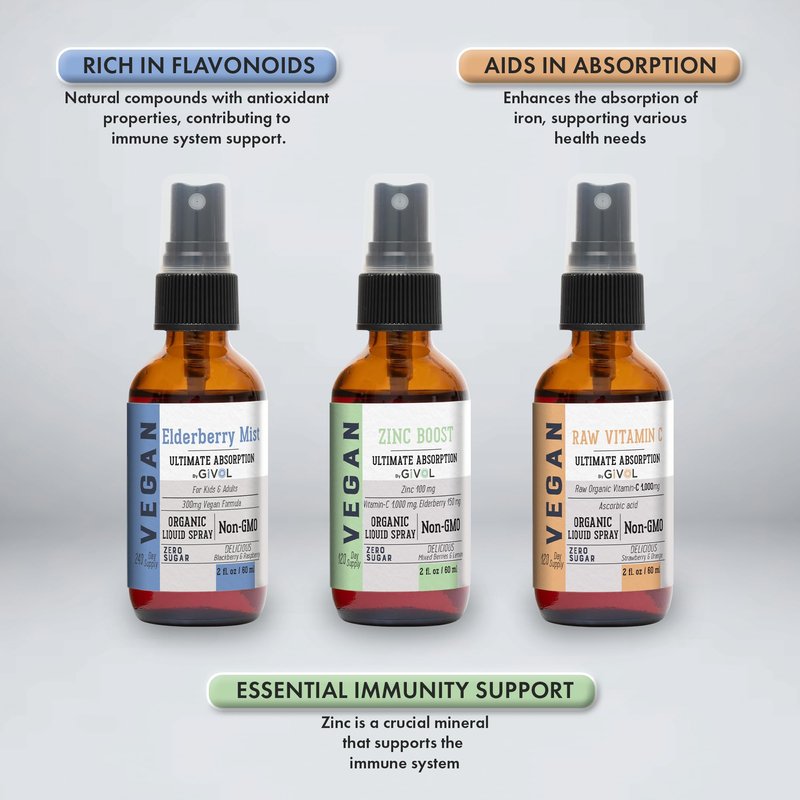- CONVENIENT THREE-PACK BUNDLE: The combination of Elderberry, Vitamin C, and Zinc Boost Mists in a single package offers a streamlined approach to health supplementation, ensuring a well-rounded routine that supports immune function, antioxidant activity, and essential nutrient provision.