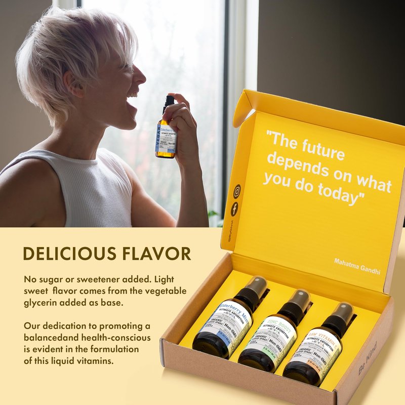 Immunity Pack Liquid Vitamins (Pack of 3) Sambucus Nigra Elderberry Mist, Zinc Boost Mist and Vitamin C Mist (Extra Strength) - Natural Immune System Support - Non-GMO Gluten-Free - 240 Days Supply