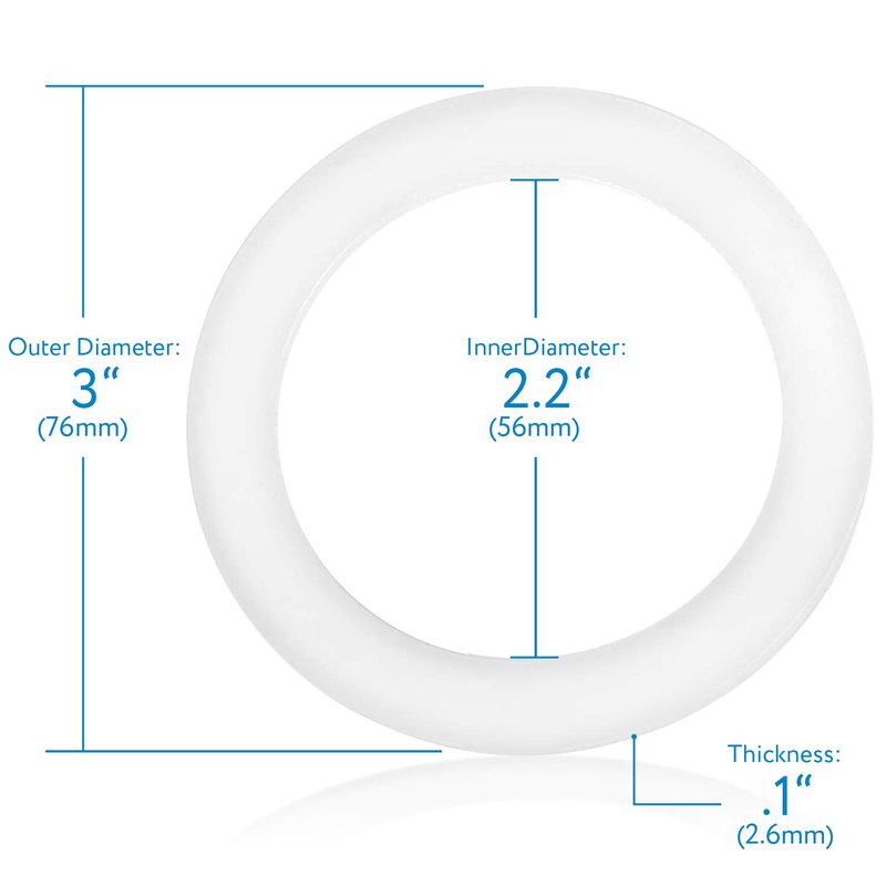 - Dimensions: The gasket is 3" across on the outside and the inside diameter is 2.2". Please ensure your union features the correct dimensions to host this gasket before purchasing. (Outer Diameter: 3’’ or 76mm --- Inner Diameter: 2.2’’ or 56mm --- Thickness: 0.1’’ or 2.6mm)