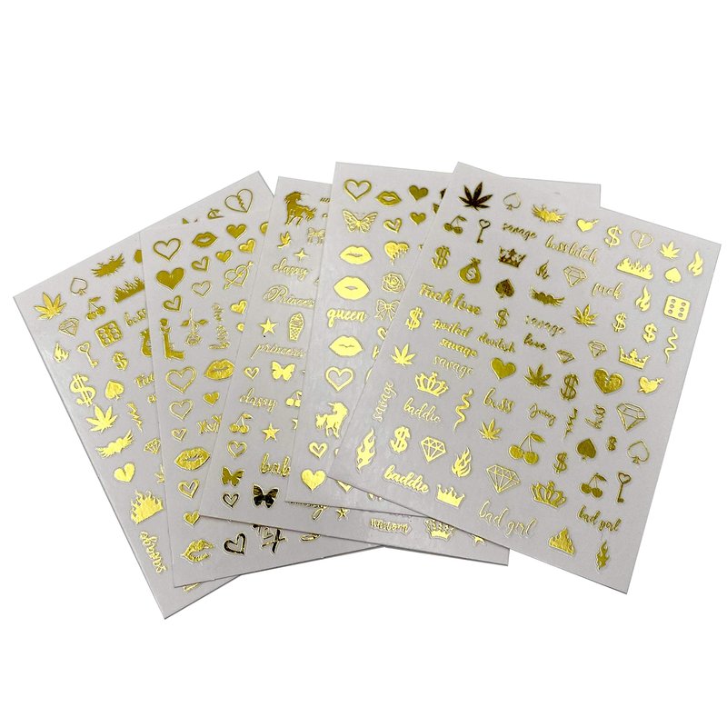 Impressed Authentic 5 Sheets Luxury Nail Art Stickers 500+ Chrome Gold Customized Nail Decals for Fake Nail Design Decorations and Salon Nails Accessories
