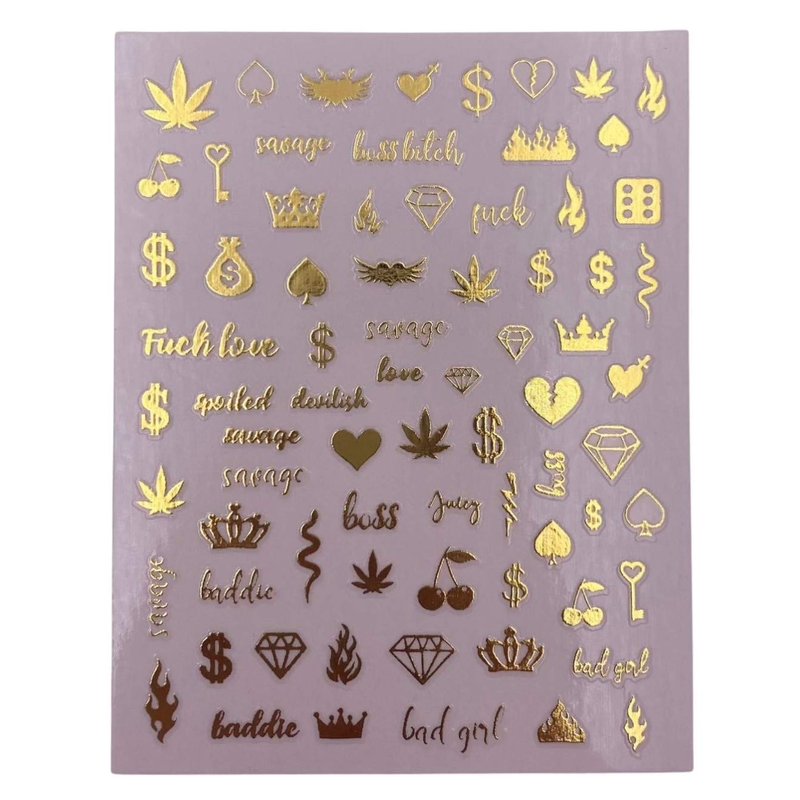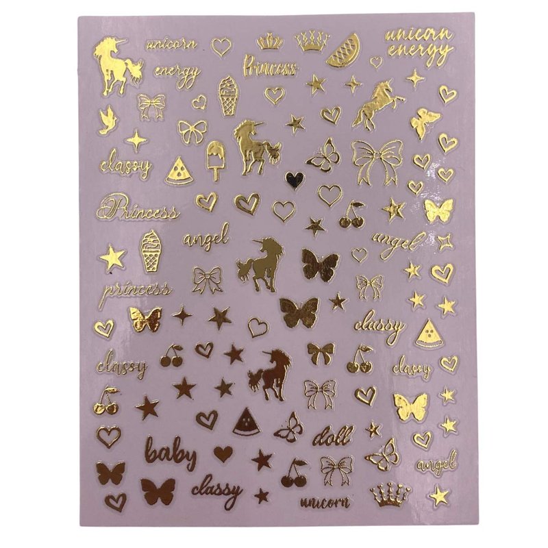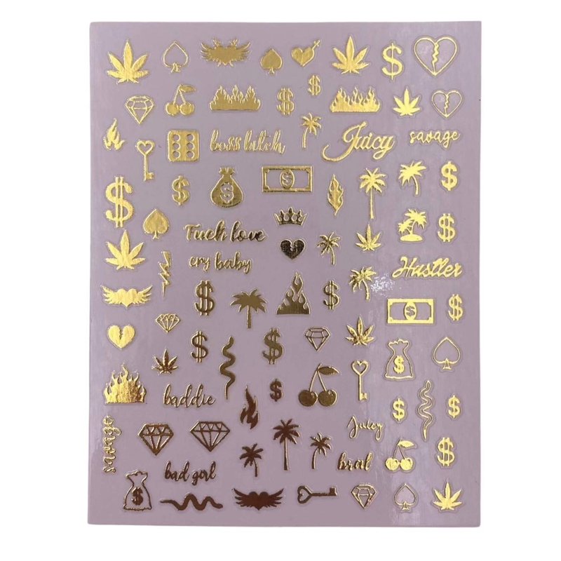 - ✧ U𝐧𝐢𝐪𝐮𝐞 𝐃𝐞𝐬𝐢𝐠𝐧: Take your nail game to the next level. Our aesthetic nail stickers are the perfect addition to your DIY nail studio. This gold chromatic aesthetic sticker set includes, crowns, dollar sign, diamond, hearts, rose, butterfly, unicorn, cherry, snake, star, lips, palm tree, flame, and many more! A perfect variety of 3D stickers to come up with countless creative, cute and cool modern designs.