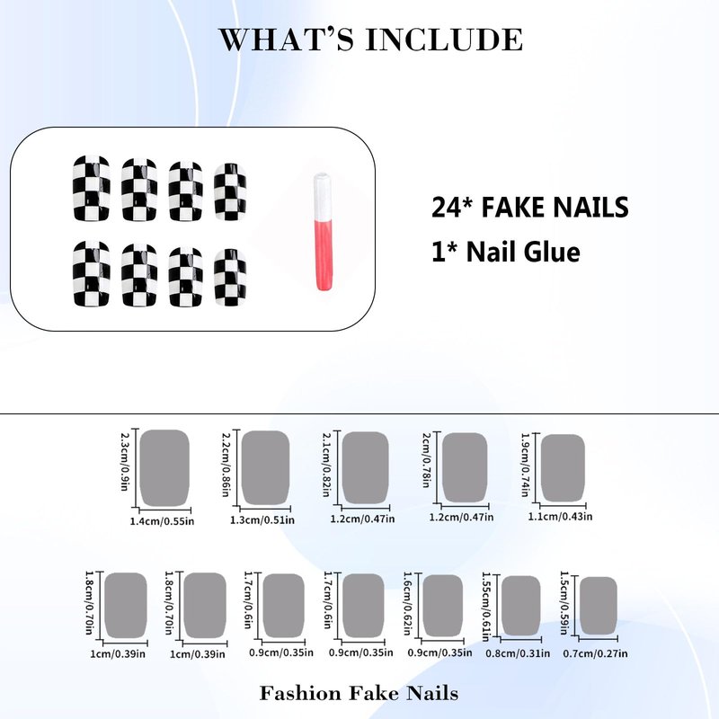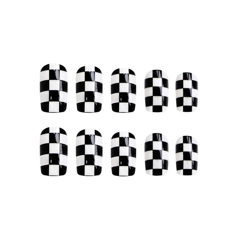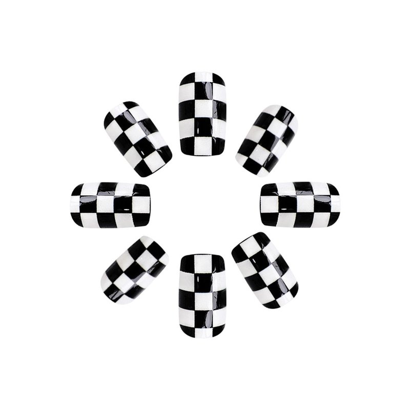 - [Quality Material] These checkerboard press on nails are made of quality acrylic material, non-toxic and gentle to your nails and skin, not easy to be scratched, will give you a nice manicure experience.