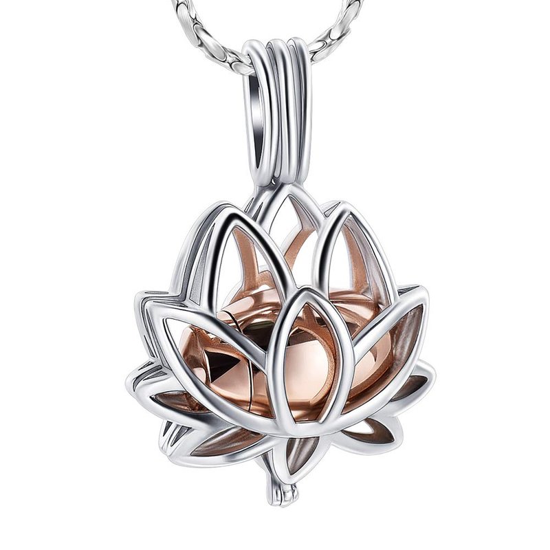 Imrsanl Cremation Jewelry for Ashes - Lotus Flower Ashes Pendant Necklace with Mini Keepsake Urn Memorial Ash Jewelry (Rose Gold)