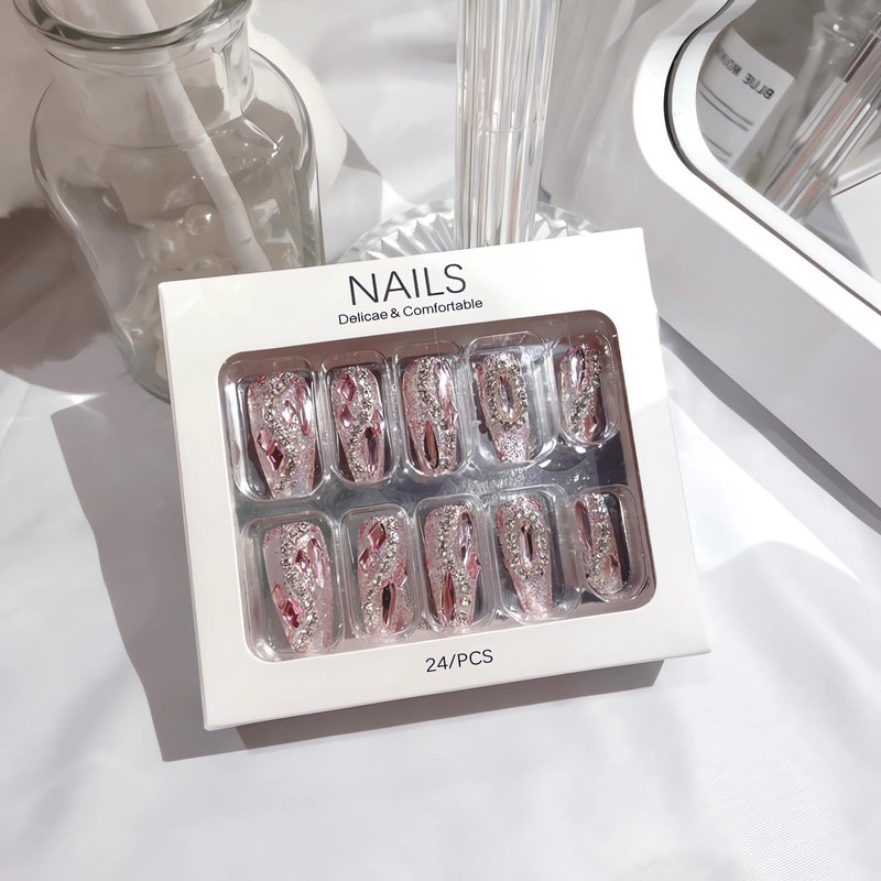 - [Quality Material] These pink rhinestone press on nails are made of quality acrylic material, non-toxic and gentle to your nails and skin, durable and not easy to be scratched, will give you a nice manicure experience.