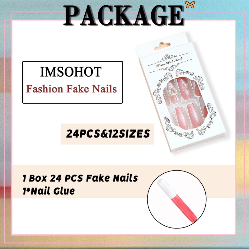 - [Package Content] You will get 24 pieces of IMSOHOT long square press on nails, a small clear box with glue, and you can trim it to any length you want~