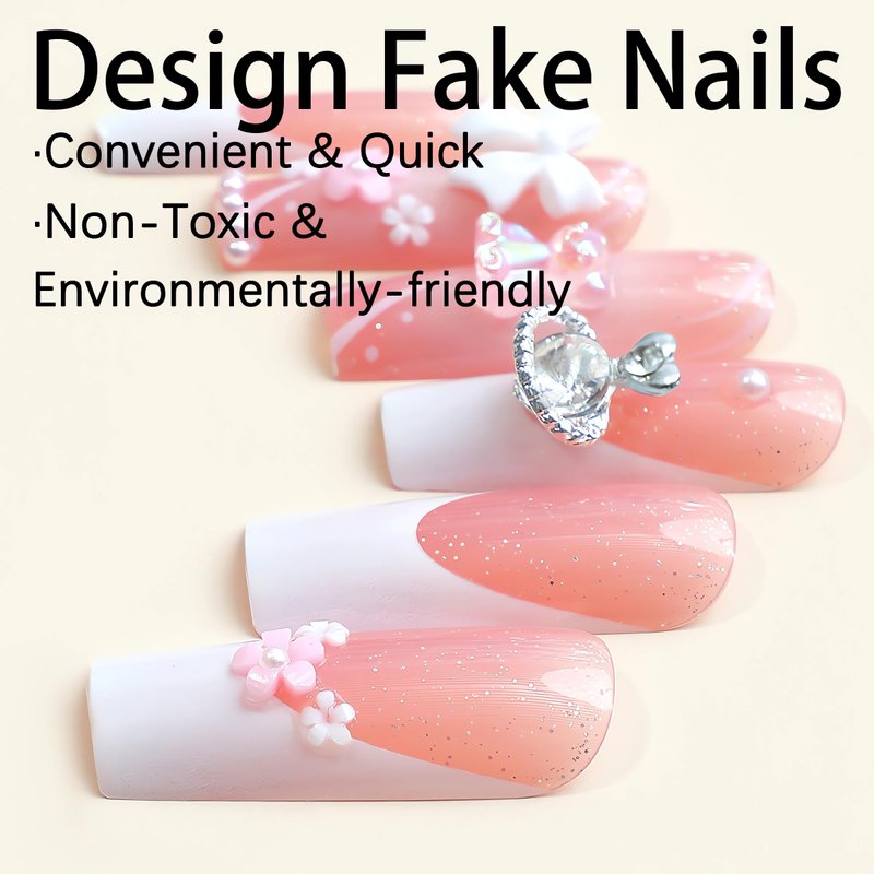 - [Quality Material] These cute pink press on nails are made of quality acrylic material, non-toxic and gentle to your nails and skin, durable and not easy to be scratched, will give you a nice manicure experience.