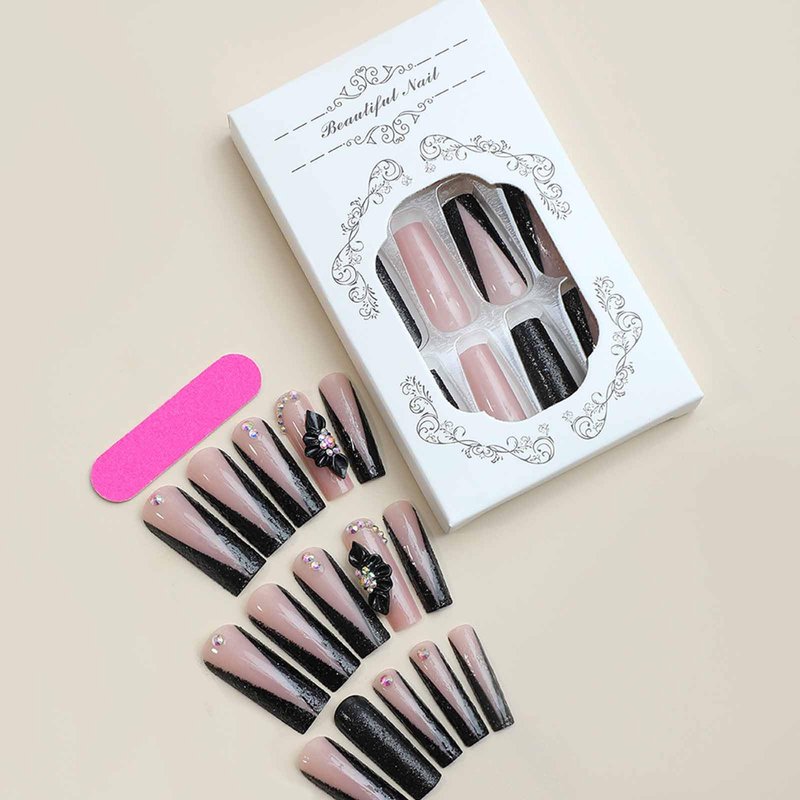 - [Quality Material] These rose of the night press on nails are made of quality acrylic material, non-toxic and gentle to your nails and skin, durable and not easy to be scratched, will give you a nice manicure experience.