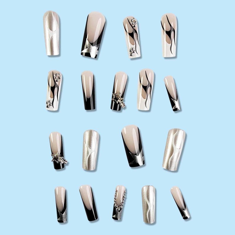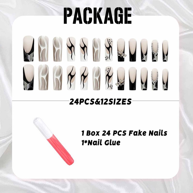 - [Quality Material] These y2k black press on nails are made of quality acrylic material, non-toxic and gentle to your nails and skin, durable and not easy to be scratched, will give you a nice manicure experience.