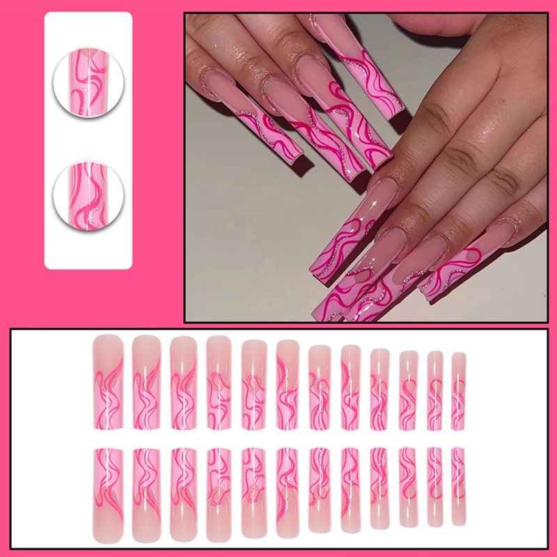 - [Quality Material] These pink wave press on nails are made of quality acrylic material, non-toxic and gentle to your nails and skin, durable and not easy to be scratched, will give you a nice manicure experience.