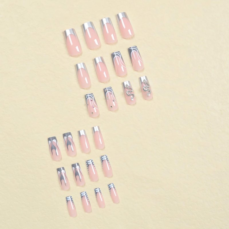 - [Quality Material] These silver flame press on nails are made of quality acrylic material, non-toxic and gentle to your nails and skin, durable and not easy to be scratched, will give you a nice manicure experience.