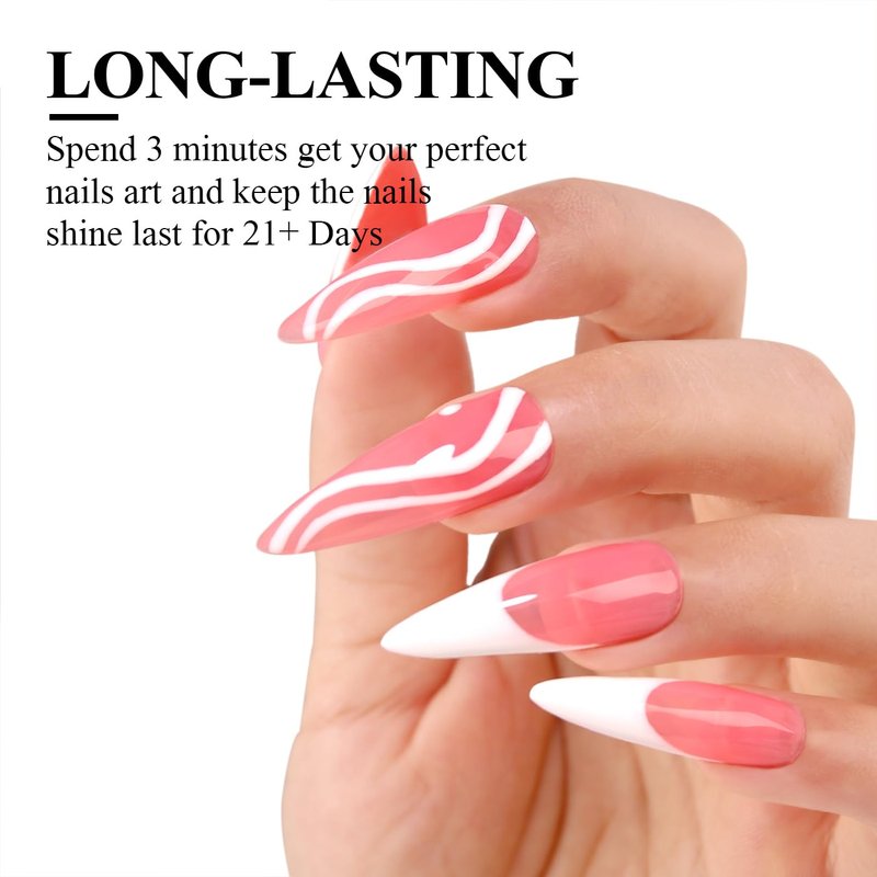 - đ ăUV Nail Lamp RequiredăWith proper application, the gel nails can last at least 21 days, cure under UV nail lamp for 60s to a completely dry.