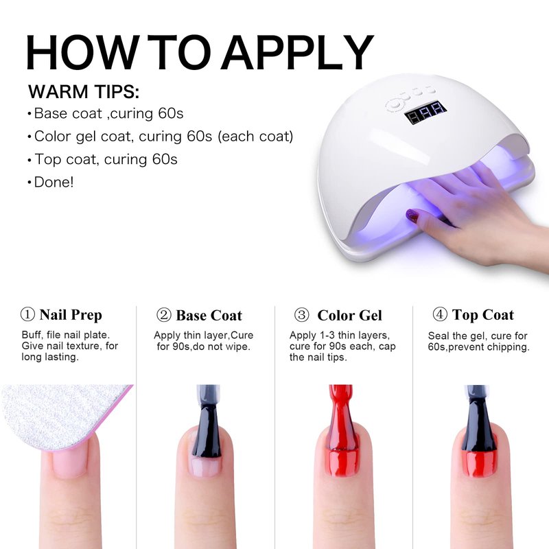 - 💎Speed Curing with UV/LED Nail Lamp: The clear pink gel nail polish kit need to be cured under LED light. Base and Top coat required. Average for LED light 60-120 secs. (Not included with separate purchase of primer and topcoat and UV gel lamp separately)