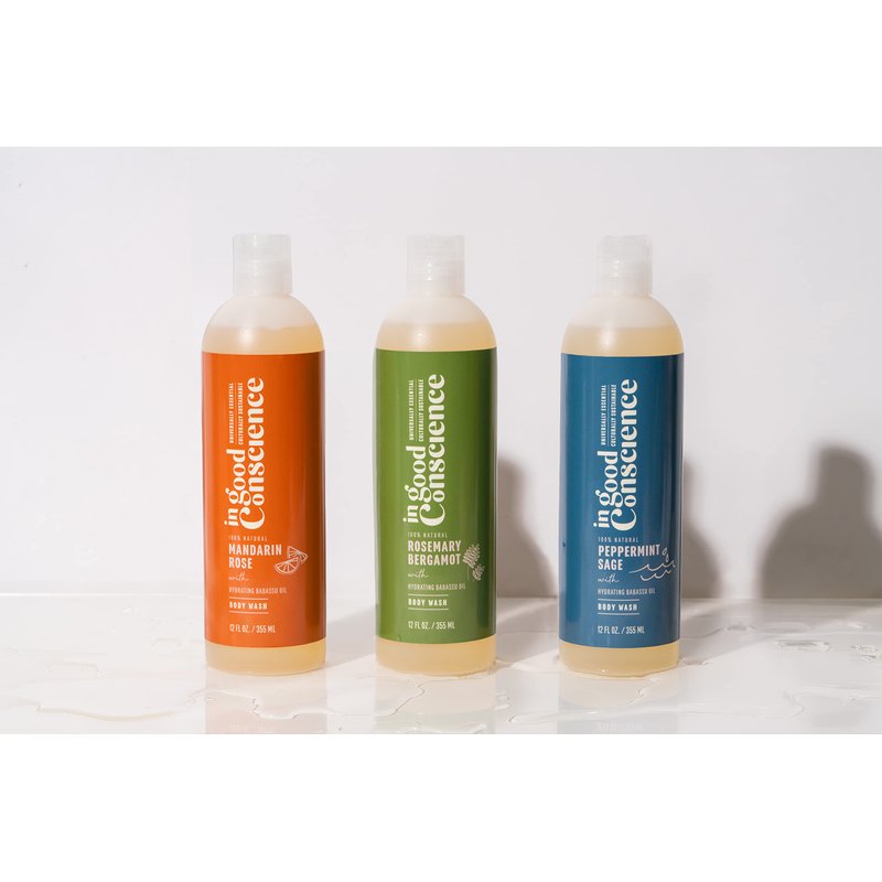 In Good Conscience Hydrating Body Wash: All-Natural Mandarin Rose & Babassu Oil | Sulfate, Paraben, Phthalate & PEG Free Soap | No Synthetic Fragrances | For Men & Women | 12 oz.