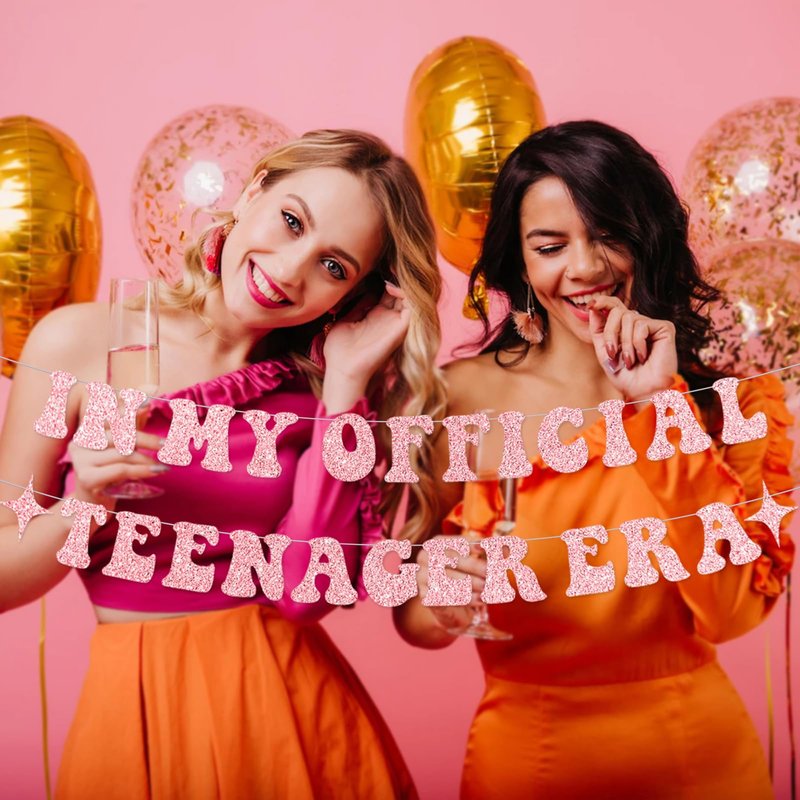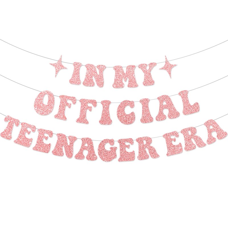 In My Official Teenager Era Banner Girls Birthday Party Banner for Teenage 13th Birthday Party Decorations Taylo Swifte Birthday Decorations Rose Gold Glitter