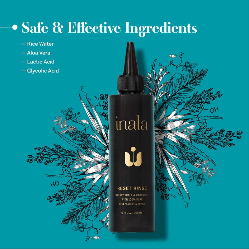 - Revives, Hydrates, and Strengthens your Hair - INALA Reset Rinse only has 8 simple ingredients. Rice Water nourishes the scalp to help reduce breakage, shedding, and thinning while strengthening and hydrating strands in one easy treatment.