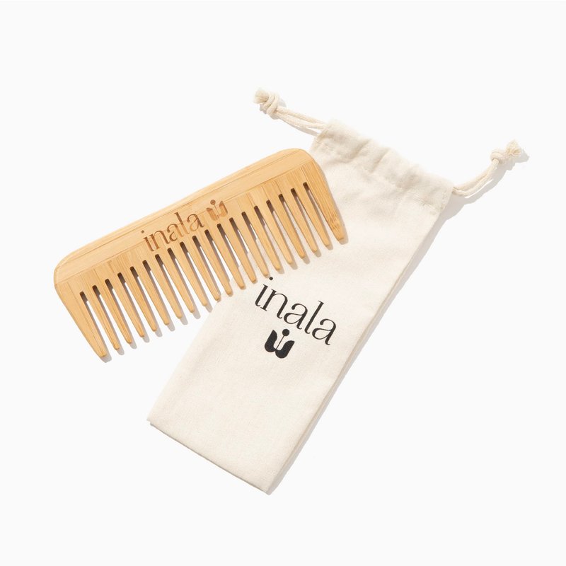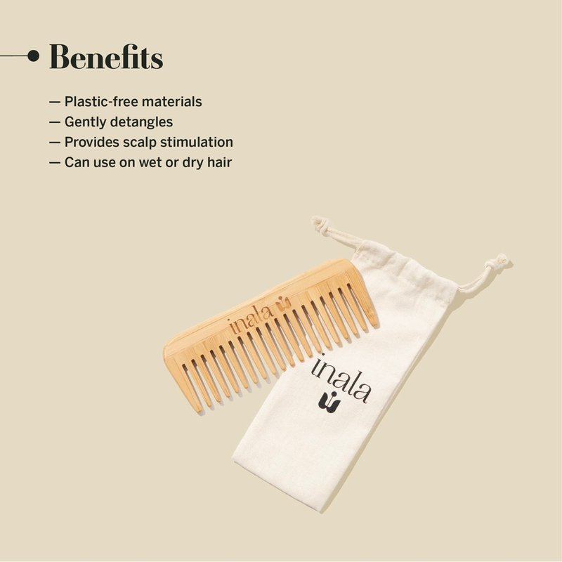 "Are you looking for a fashionable and functional alternative to traditional plastic combs? Try our Inala Strand Smoother, made from sustainable and eco-friendly bamboo. The wide-placed and rounded teeth glide smoothly through the strands, reducing breakage and distributing natural oils from root to tip. It’s made from 100% natural bamboo, which is an eco-friendly option to traditional plastics. Inala's Strand Smoother works on wet or dry hair and is perfect for on-the-go styling or for giving as a gift due to its cute canvas travel pouch. At INALA, we believe that everyone is worthy of beauty. Our products are designed to cleanse and strengthen healthy hair, so you can feel beautiful inside and out. Our passion is natural beauty - our formulas use only quality ingredients that nourish your tresses from root to tip."