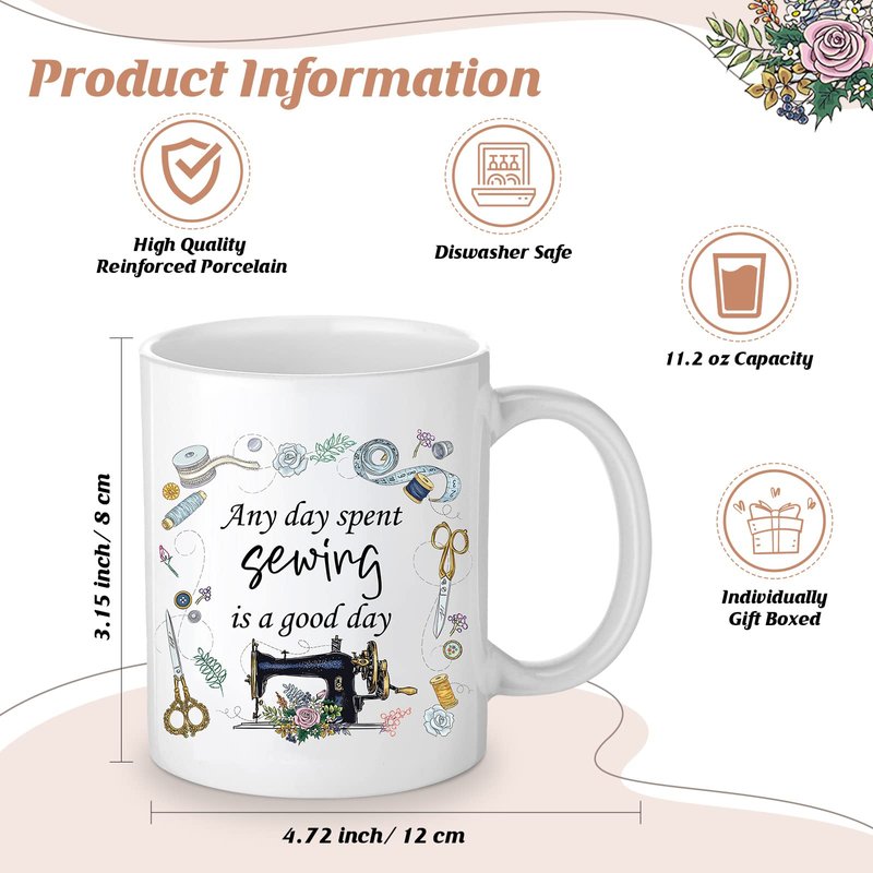 - Size Information: this seamstress tailors sewing canvas bag measures about 9.1 x 6.7 x 1.6 inches/ 23 x 17 x 4 cm, enough capacity allows you to store many things; The sewing quilting coffee mug gift is about 3.2 x 3.2 x 3.7 inches/ 8 x 8 x 9.5 cm and the metal sewing machine key chain measures about 1.2inches/ 3 cm in diameter, proper size for most women and girls to use