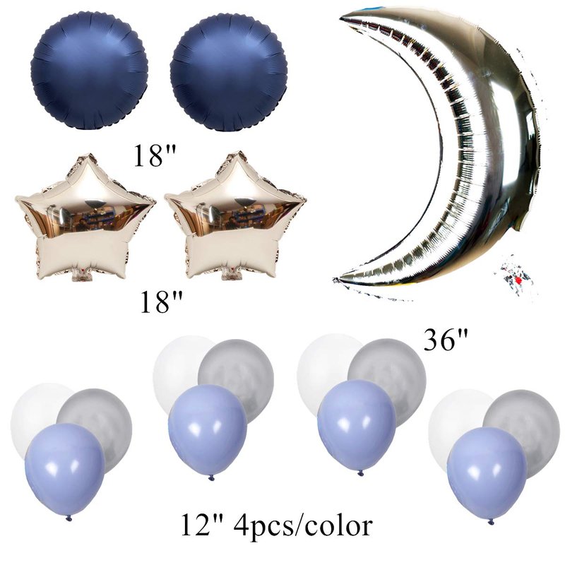 InBy 15pcs Navy Blue and Gold Moon Balloon Sky Night Moon Star Theme Balloon Party Decoration Baby Boy Girl Shower Wedding Birthday 36" Moon Foil Mylar Balloon 18" Start Balloon 12" Latex Balloon Kit