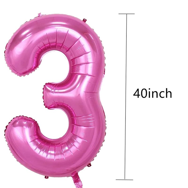 - -1x 40 inch Hot Pink Number '3' Foil Balloon