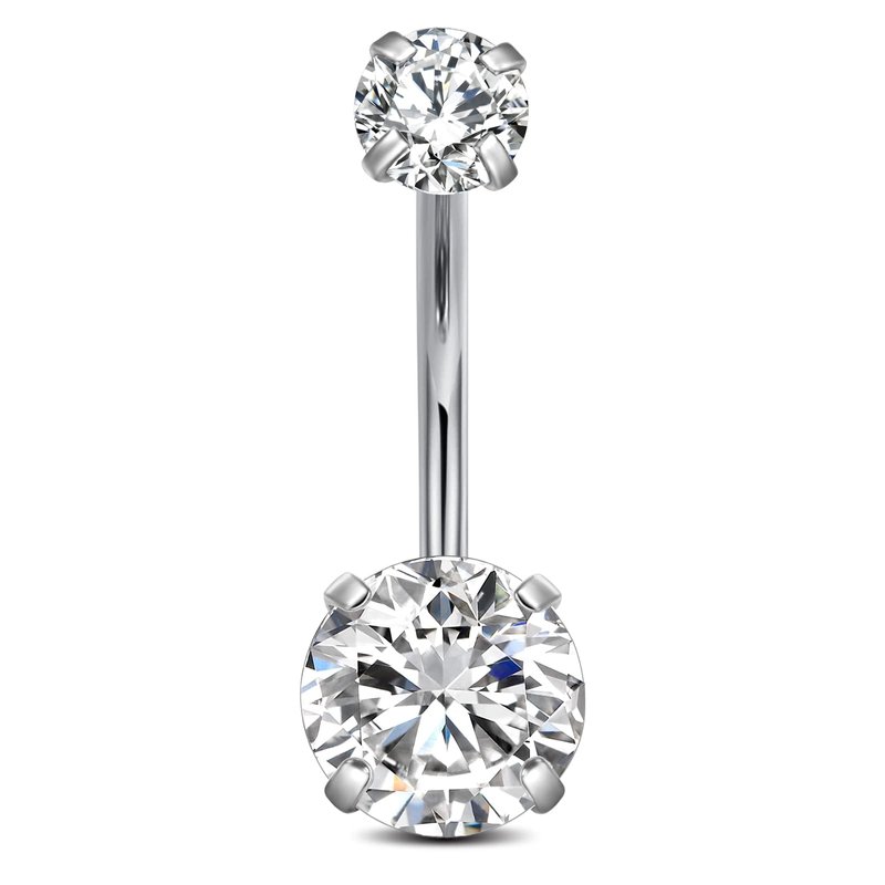 Incaton 14G Belly Button Ring Surgical Stainless Steel Round Cubic Zirconia Navel Barbell Belly Rings For Women 6/8/10/12mm 1S12